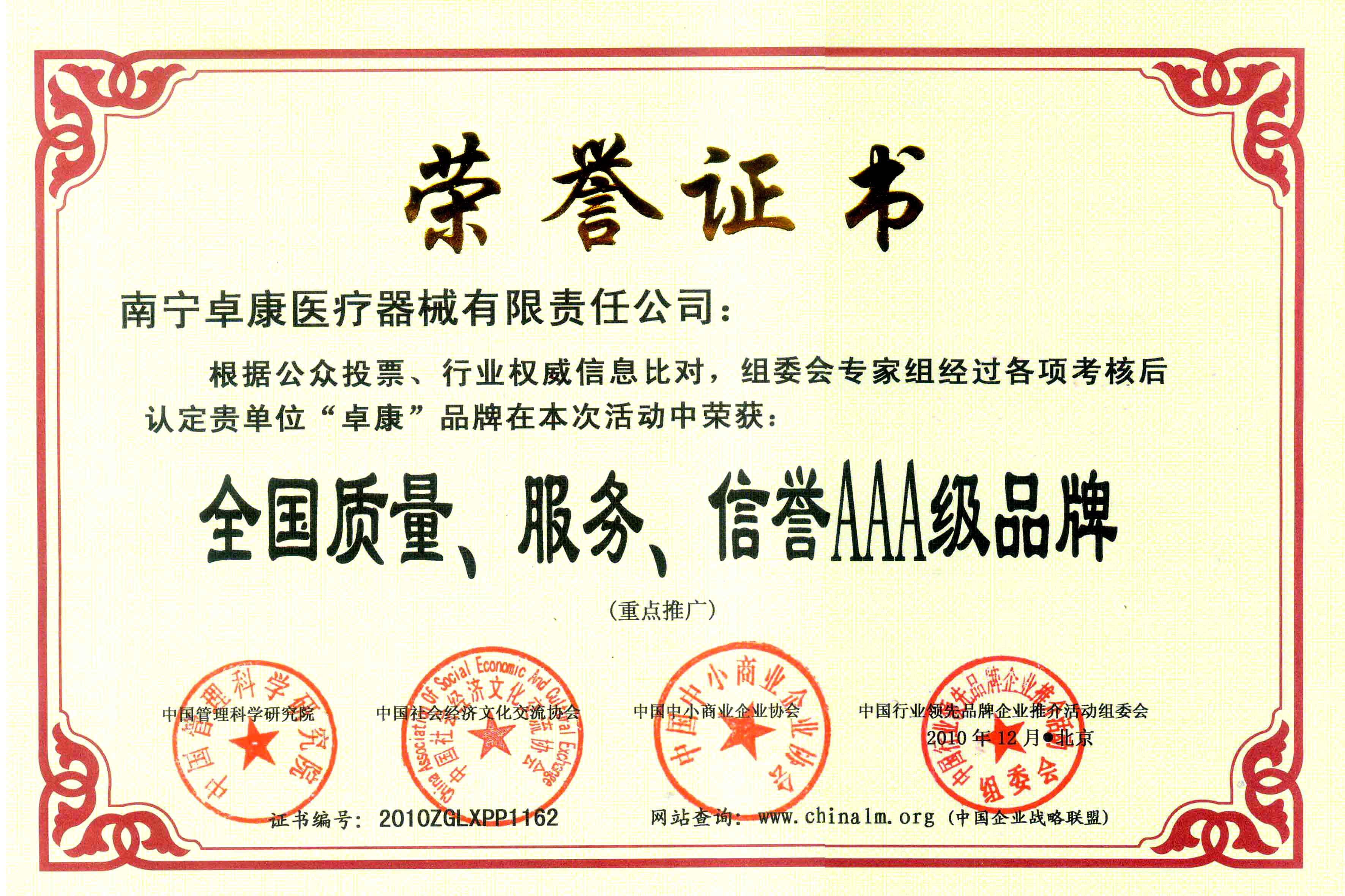 陸江榮獲引領行業發展杰出貢獻人物證書 --------卓康公司榮獲全國質量、服務、信譽AAA級品牌證書